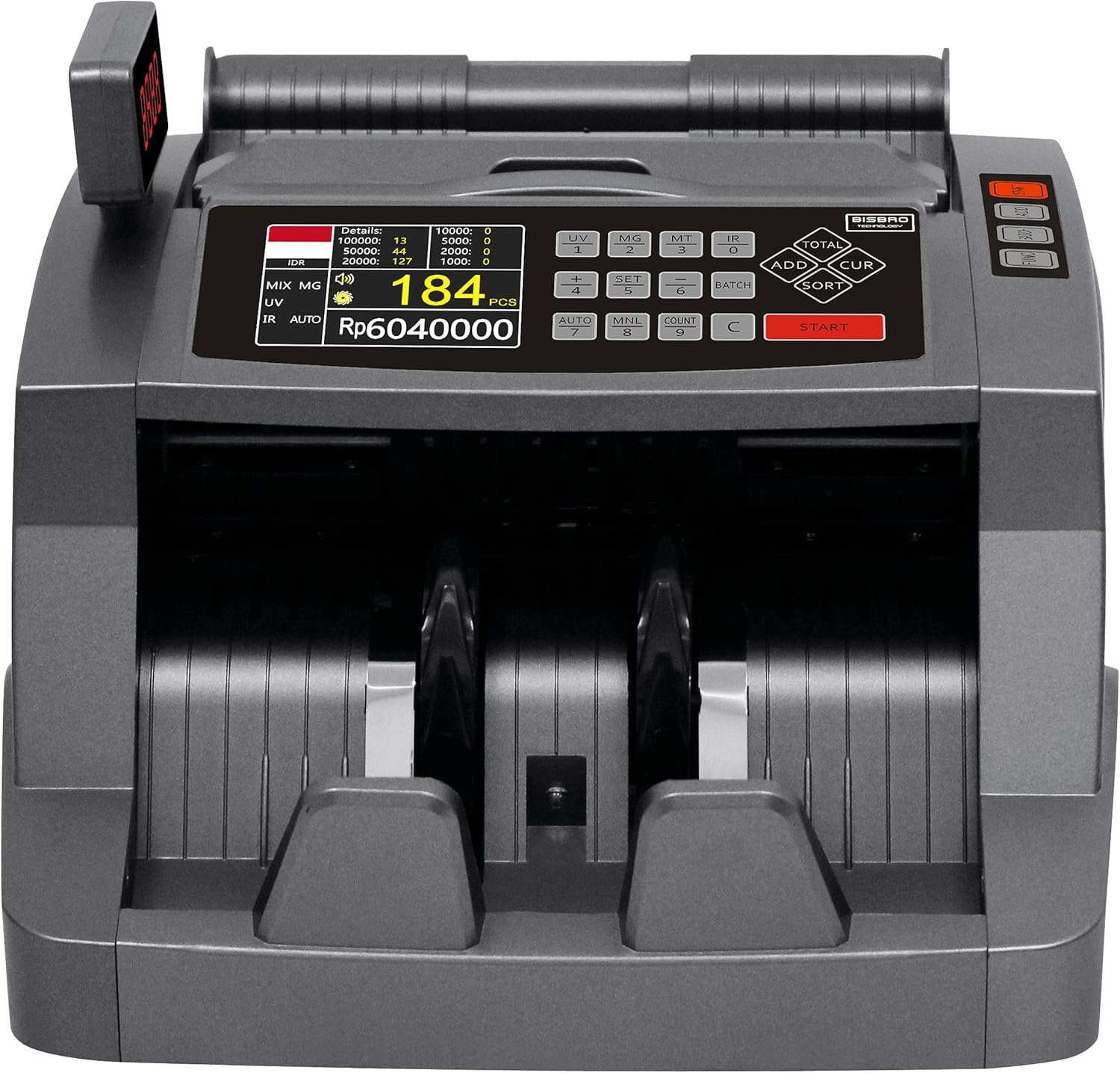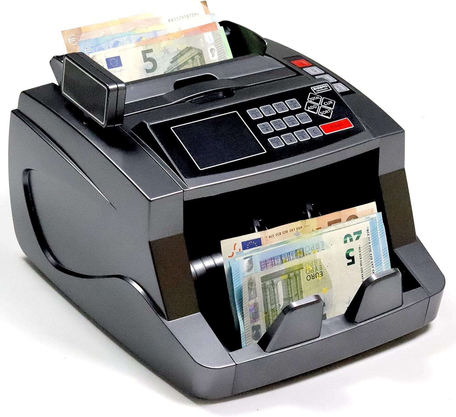 Effiziente Wertzählung: Verarbeitet gemischte Euro-Banknoten blitzschnell. Das große LCD-Display zeigt sowohl die Stückzahl als auch den Gesamtwert an – ideal für Kassenabschlüsse und Backoffice.