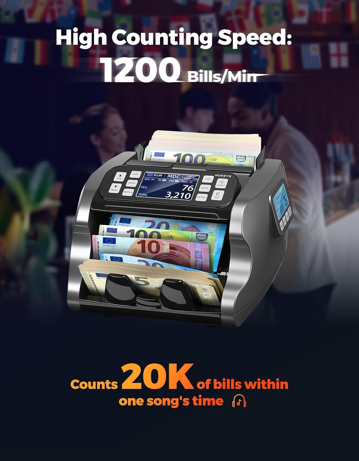 High-Speed Performance: Zählt bis zu 1.200 Scheine pro Minute mit einer Präzision von 99,9 %. Manuelle Nachprüfungen entfallen, was wertvolle Zeit im Tagesgeschäft spart.
