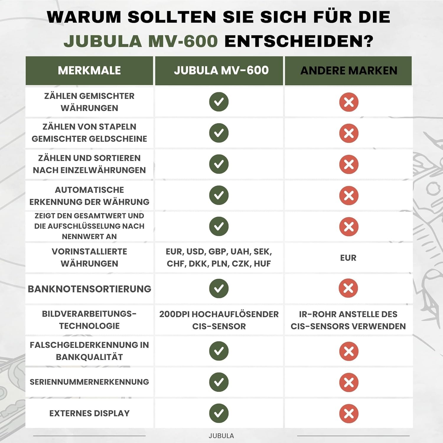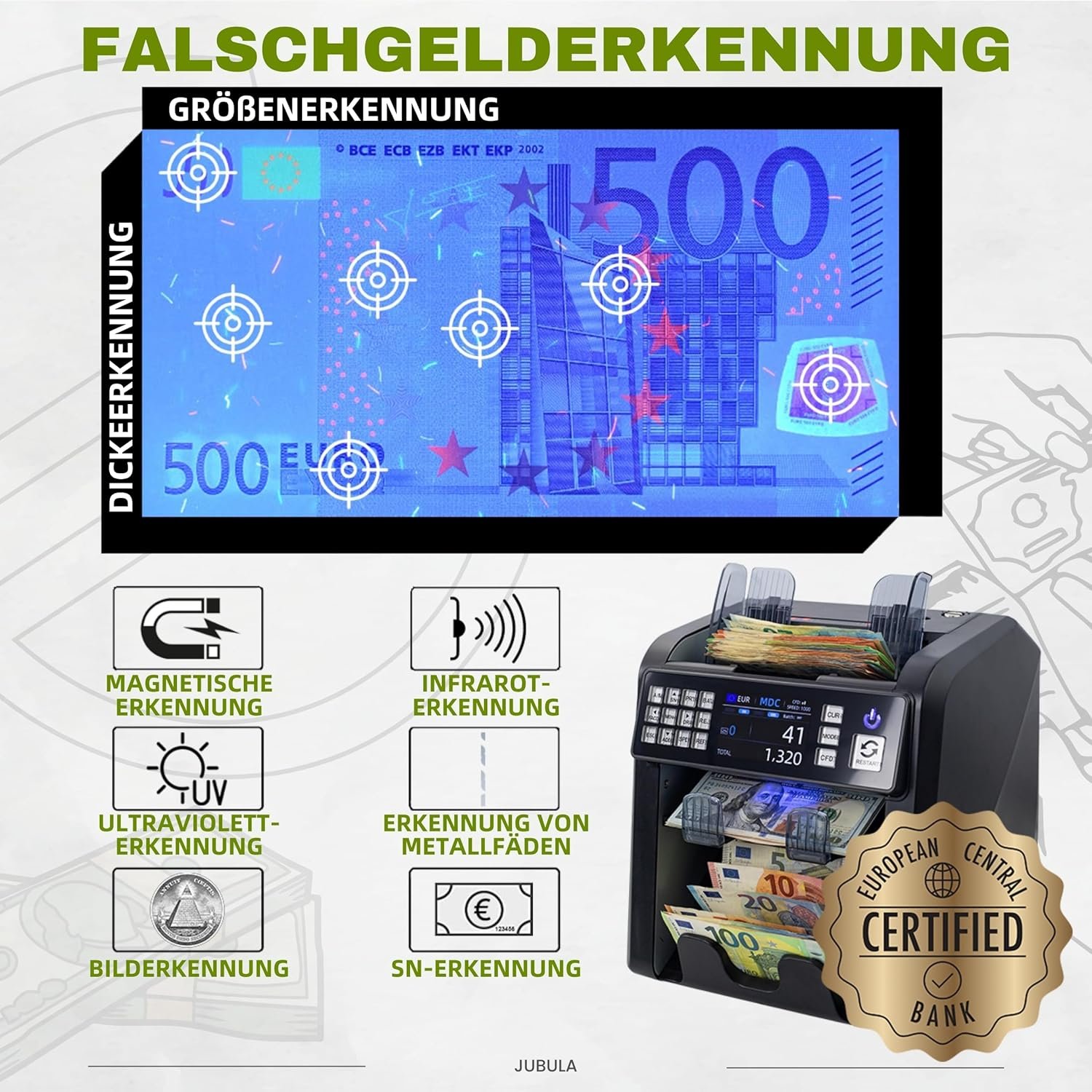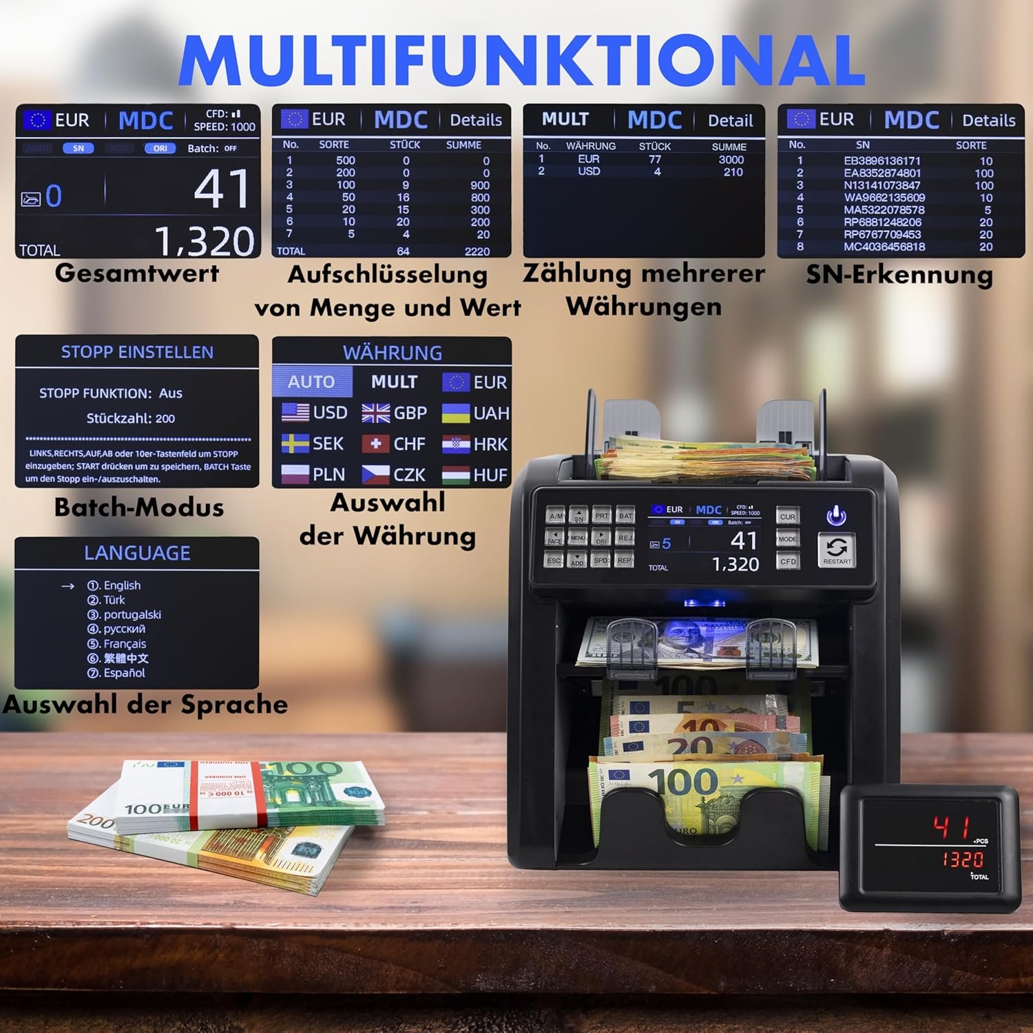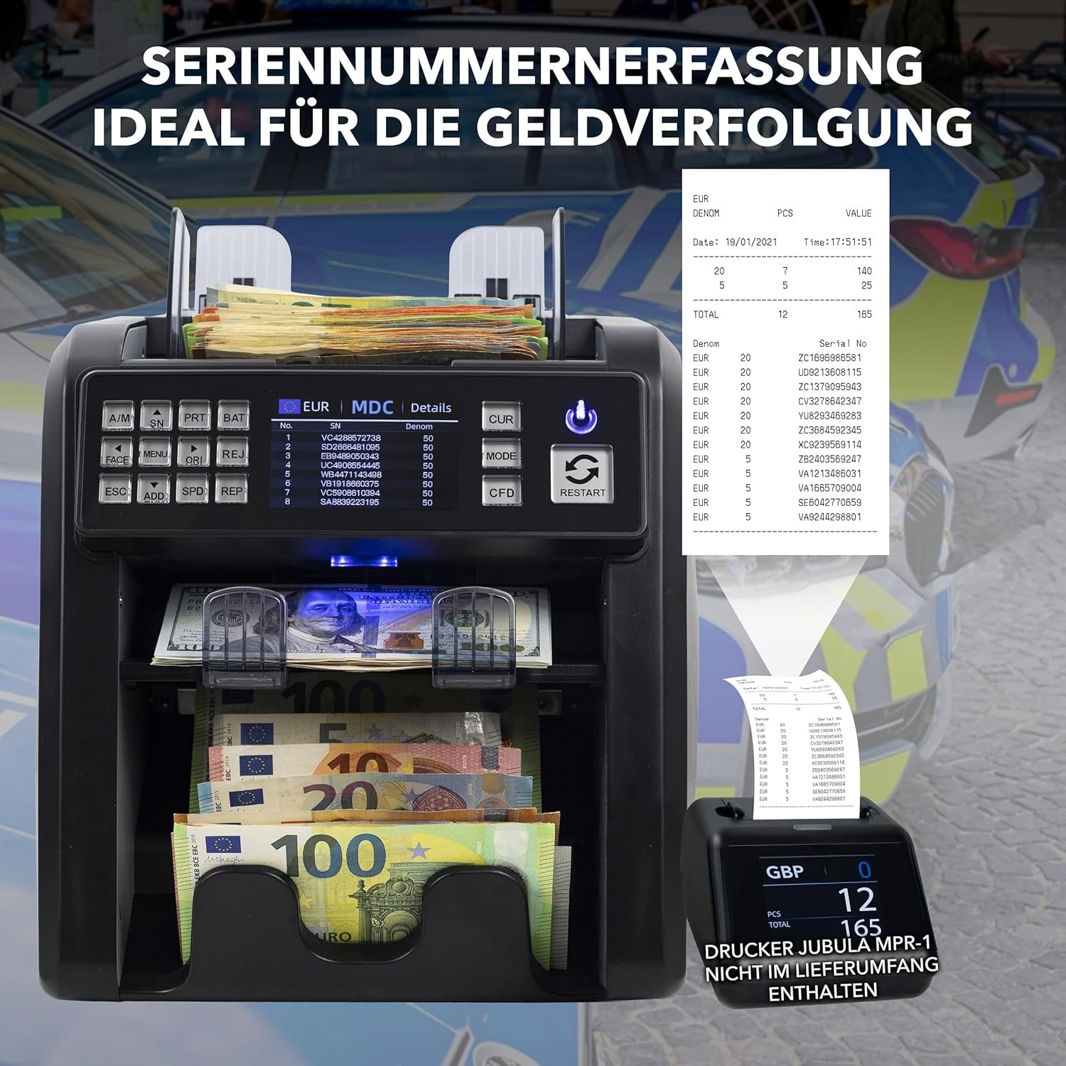 MV-500 Geldzählmaschine: Profi-Wertzähler mit 2CIS & Falschgeldprüfung (UV/MG/IR). Für EUR, USD, GBP, CHF etc. Exakt & Zuverlässig.