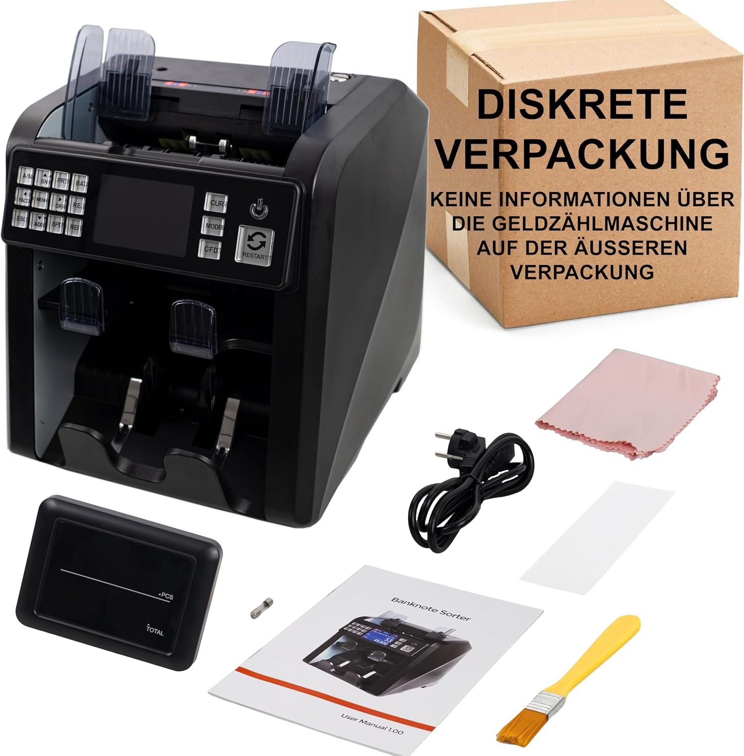 Bonvoisin Geldzählmaschine: Wertzähler für gemischte EUR-Scheine mit UV/MG/IR-Prüfung & externem Display. Profi-Zähler (1.000 Stk/Min).