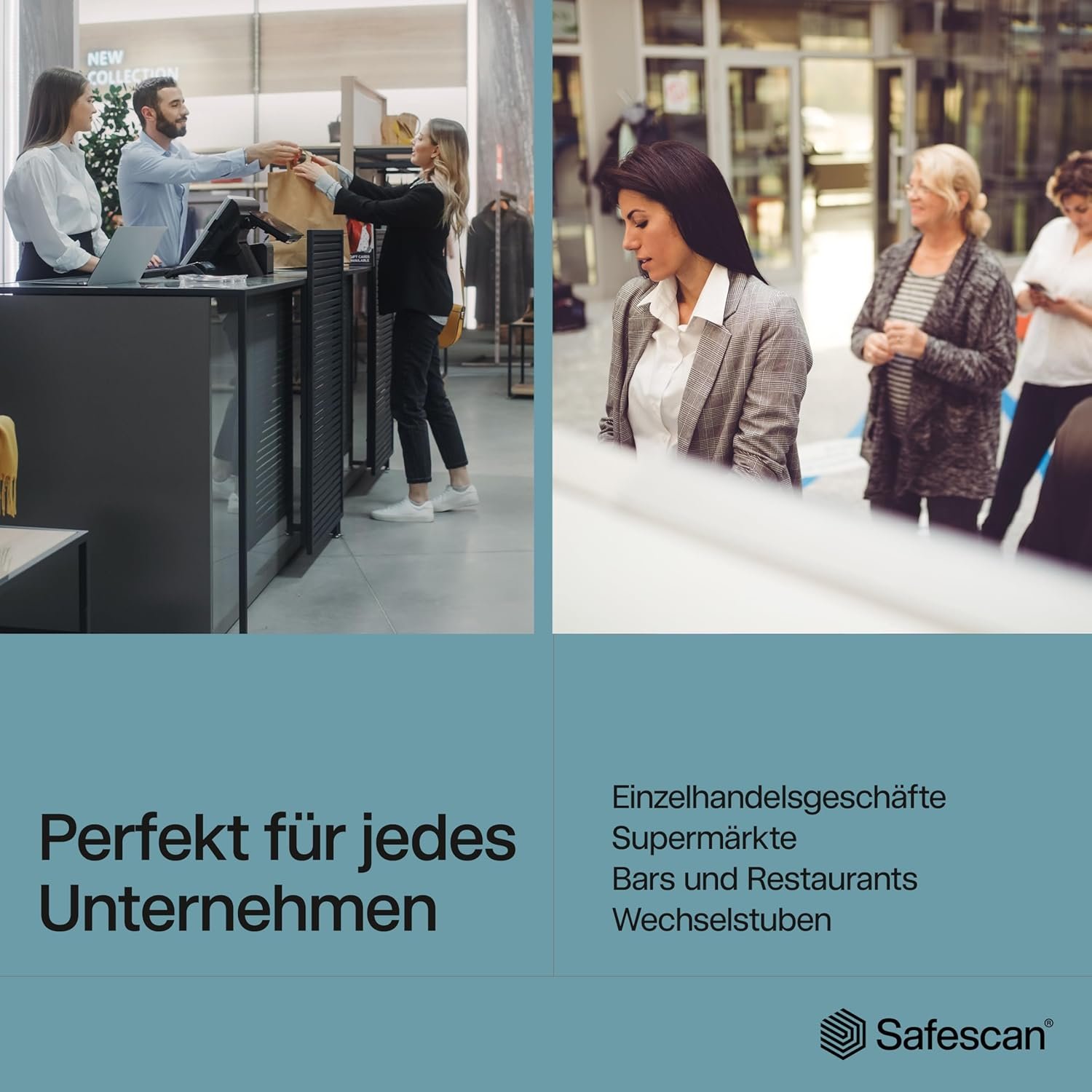 Safescan 2865-S: Wertzähler für gemischte Banknoten mit 7-facher Prüfung. Mehrsprachig, präzise & intuitiv. Profi-Geldzählmaschine.